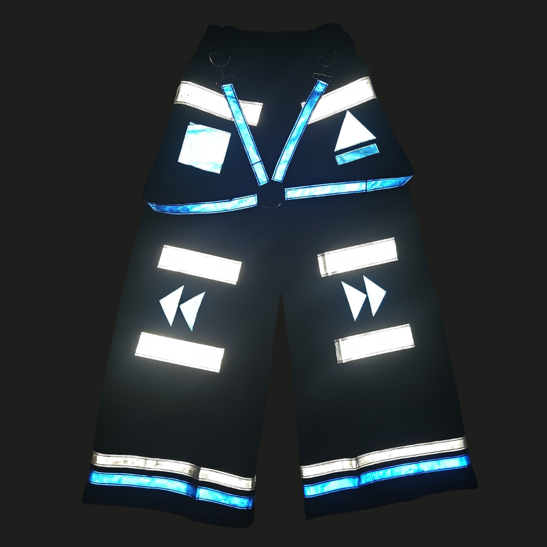 With the explosive resurgence of the Melbourne Shuffle, we had to bring Phat Pants back - reborn from the heart of Aussie rave history. Featuring exaggerated flares, vibrant reflective panels and bold suspenders - these are the iconic shuffle pants you've seen in every Melbourne Shuffle compilation. Every kick, spin, and slide becomes a visual assault, amplified under lasers and strobes. Join the revolution, embrace the nostalgia and own the dancefloor at your next rave or festival.