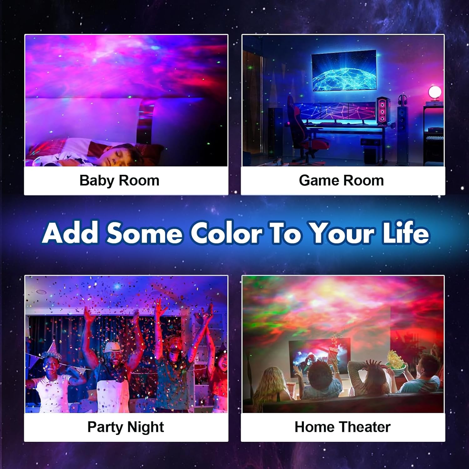 Bring the universe to kick-ons. Turn any space into a cosmic rave cave with our Galaxy Projector - your all-access pass to interstellar vibes. With swirling nebula clouds, laser-like stars, and customizable colour modes, it blasts your walls and ceilings into another dimension. Plug it in, zone out, and let the universe unfold around you.