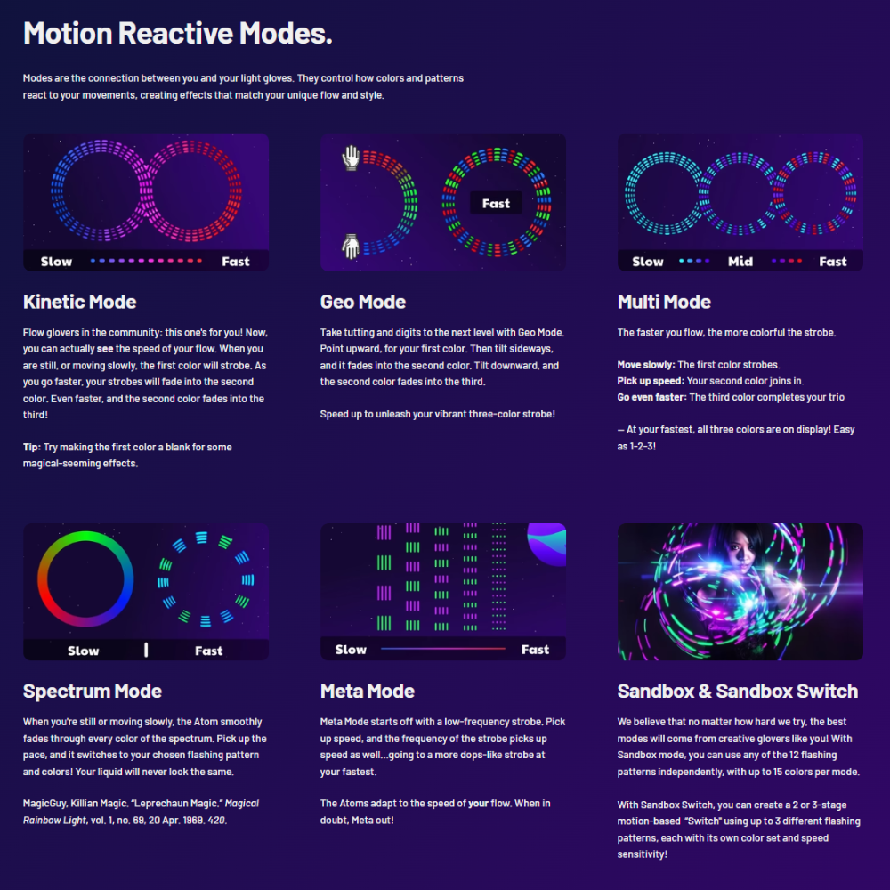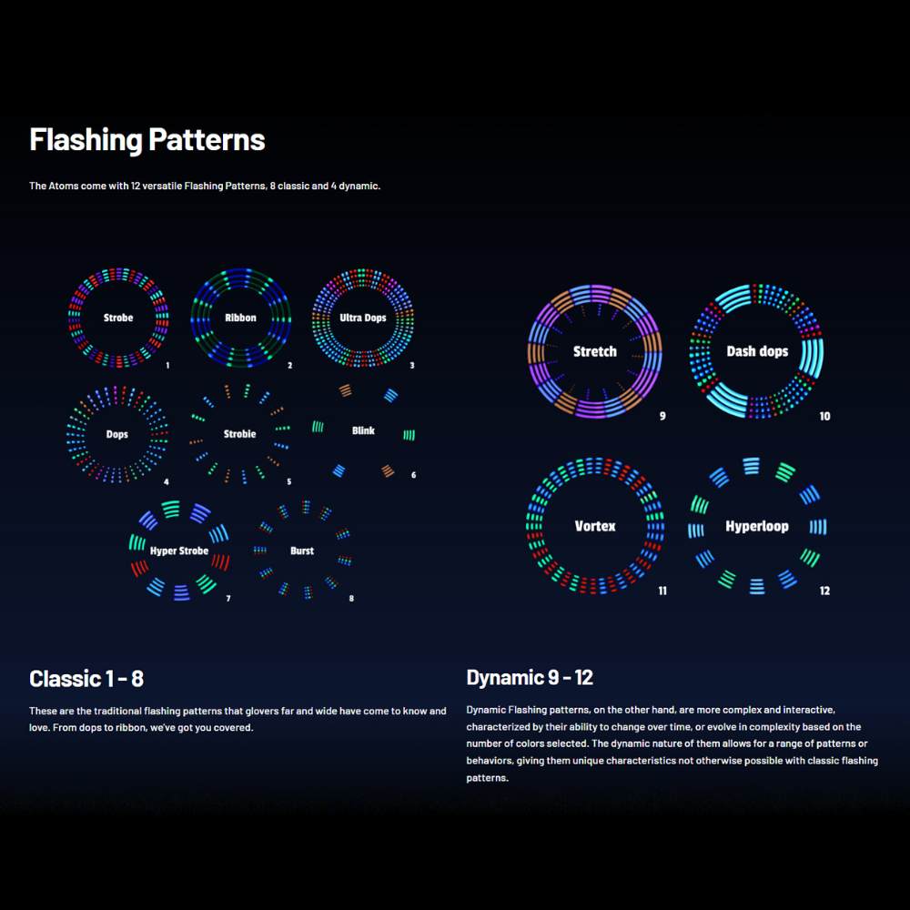 Harness the power of Futuristic Lights most advanced glove set and melt minds on the dancefloor. Seamless chip-to-chip communication 2.0, nanolights and endless colour and pattern customisation allows you to craft unique light shows efficiently and comfortably. Display your gloving prowess at your next rave or festival with the Atom Motion Reactive LED Light Gloves.