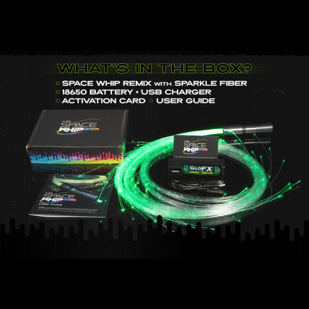 Unleash the celestial energy of the GloFX Space Whip - a breathtaking fusion of elegance, innovation, and light. Powered by vibrant LEDs and dozens of customizable modes, it transforms your flow into a cosmic spectacle; radiant, fluid, and utterly mesmerizing. Perfect for body wrapping, spinning and looping - envelope yourself in a galaxy of LED fibers and command the light show at your next rave or festival.