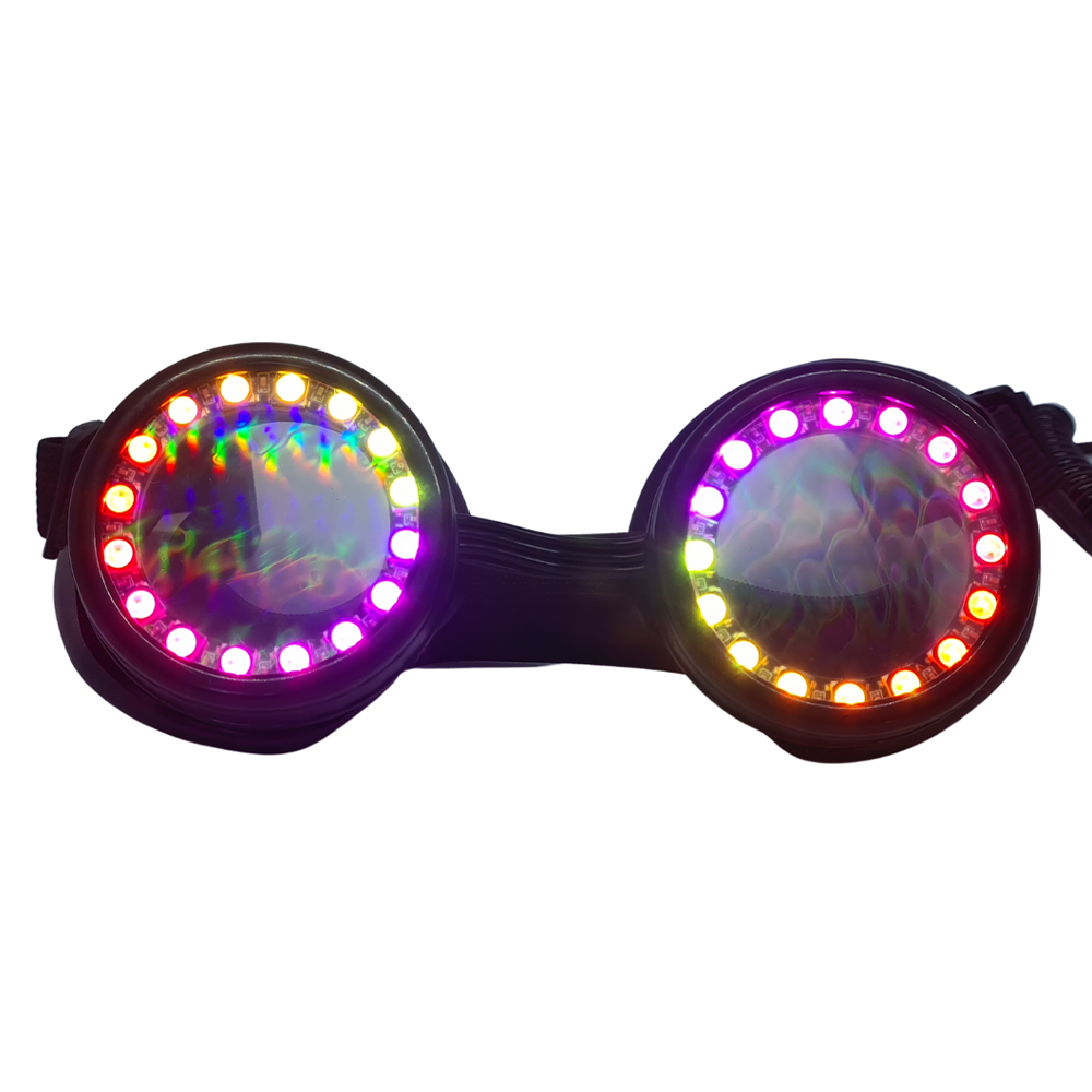 Our Halo LED Diffraction Goggles fuse mind-bending visuals with customisable vibrant LEDs, giving you full control over the chaos. With the click of a remote, change colours, patterns, and effects to create your own atmosphere. Warp your reality and illuminate the dancefloor at your next rave or music festival.