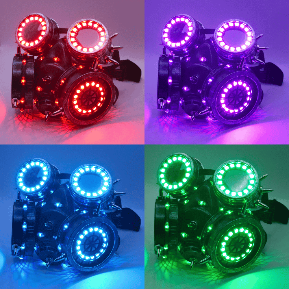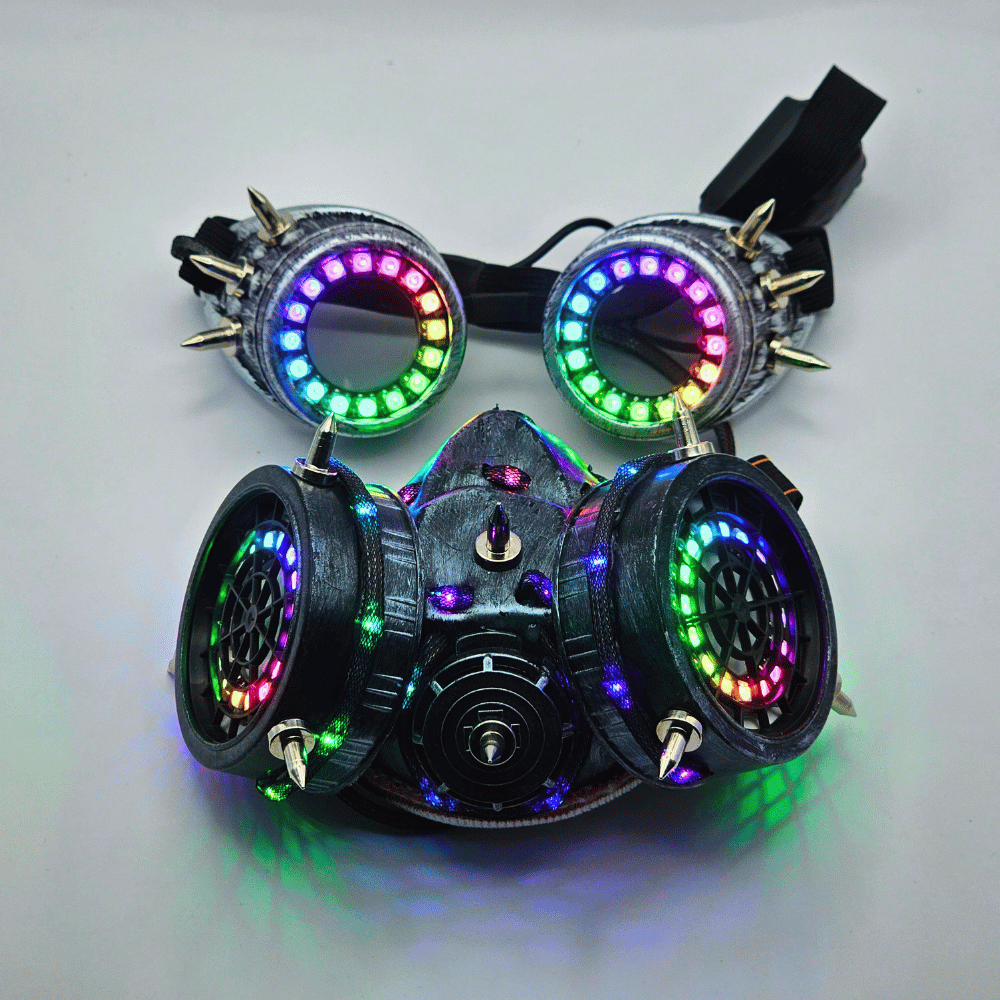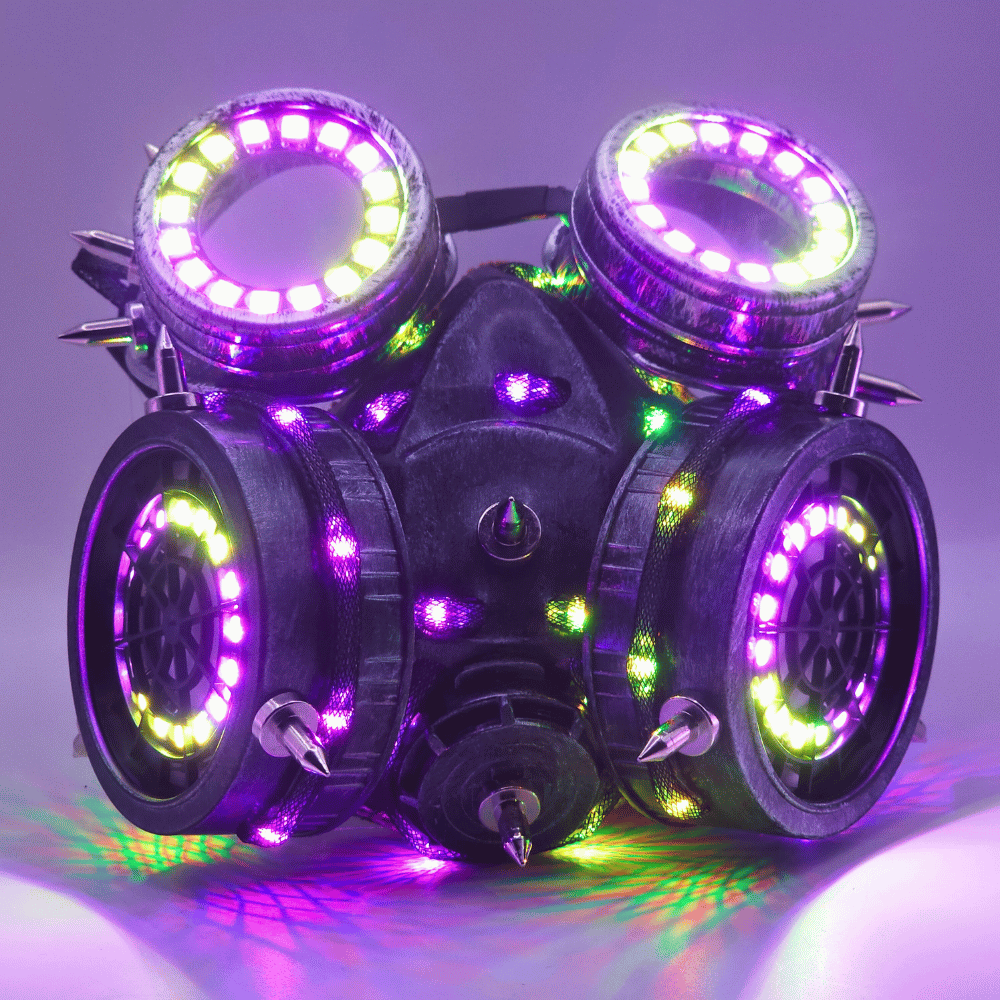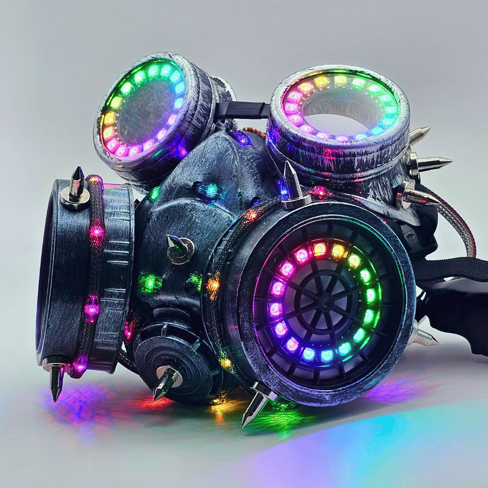 Introducing the Hellion LED Mask & Goggle Set – a fusion of steampunk grit and next-gen rave tech made for hardcore ravers who demand the highest quality. With fully customisable remote-controlled multicolour LEDs and a post-apocalyptic aesthetic, your aura will radiate to those around you and turn heads at your next rave or music festival.