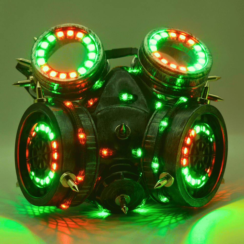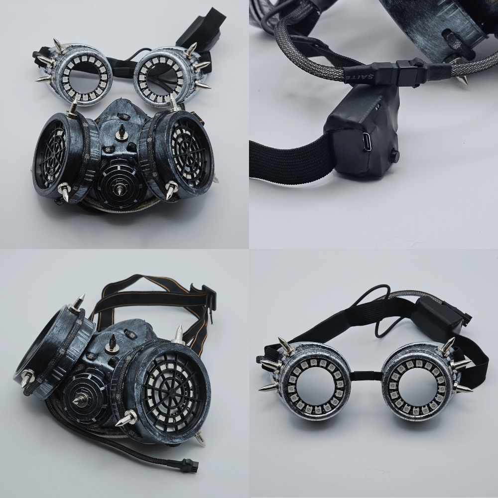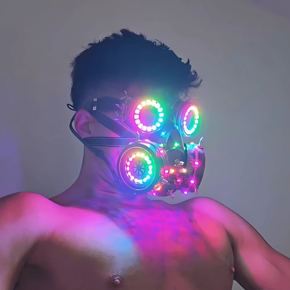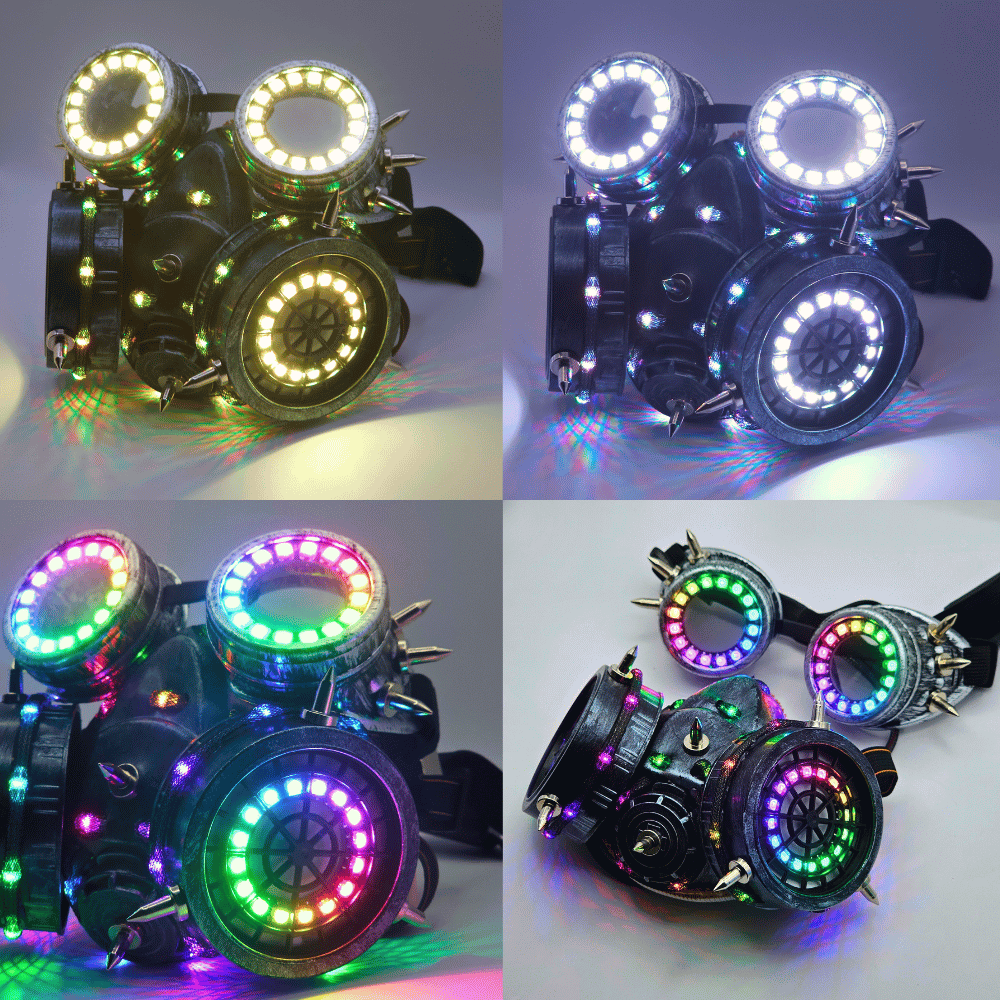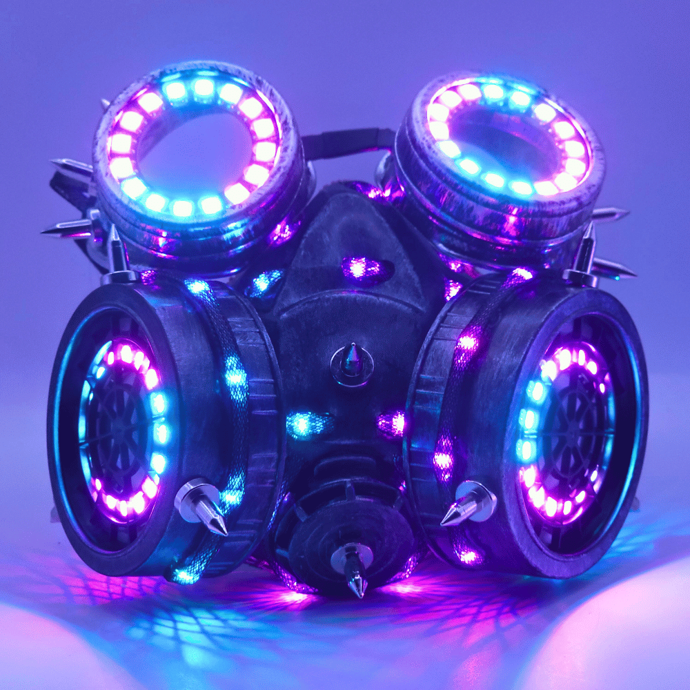 Introducing the Hellion LED Mask & Goggle Set – a fusion of steampunk grit and next-gen rave tech made for hardcore ravers who demand the highest quality. With fully customisable remote-controlled multicolour LEDs and a post-apocalyptic aesthetic, your aura will radiate to those around you and turn heads at your next rave or music festival.
