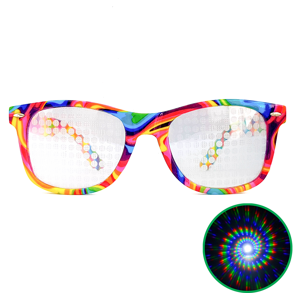 Reality? Overrated. Slide on our Diffraction Glasses and immerse yourself in a mind bending visual experience. Every beam of light splits into a stunning explosion of vibrant, prismatic rainbows. These glasses are your ticket to the ultimate raver's ecstasy and perfect for sharing with friends and likeminded ravers. Are you ready to warp your mind and break the limits at your next rave or festival?
