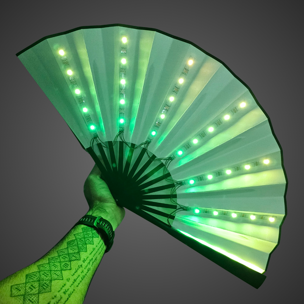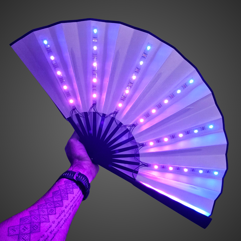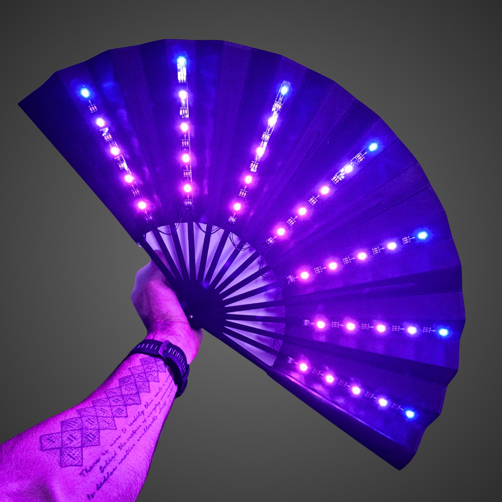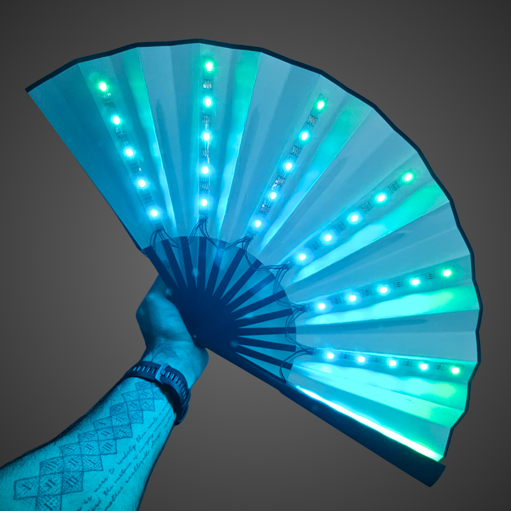Unleash a neon light show while cutting through the heavy heat of the crowd. Embedded with an array of vibrant, multicolour LED strips, this fan transforms into a mesmerising halo of shifting hues and dynamic patterns that is fully customisable with remote control. Bring the energy and stay fresh at your next rave or festival.