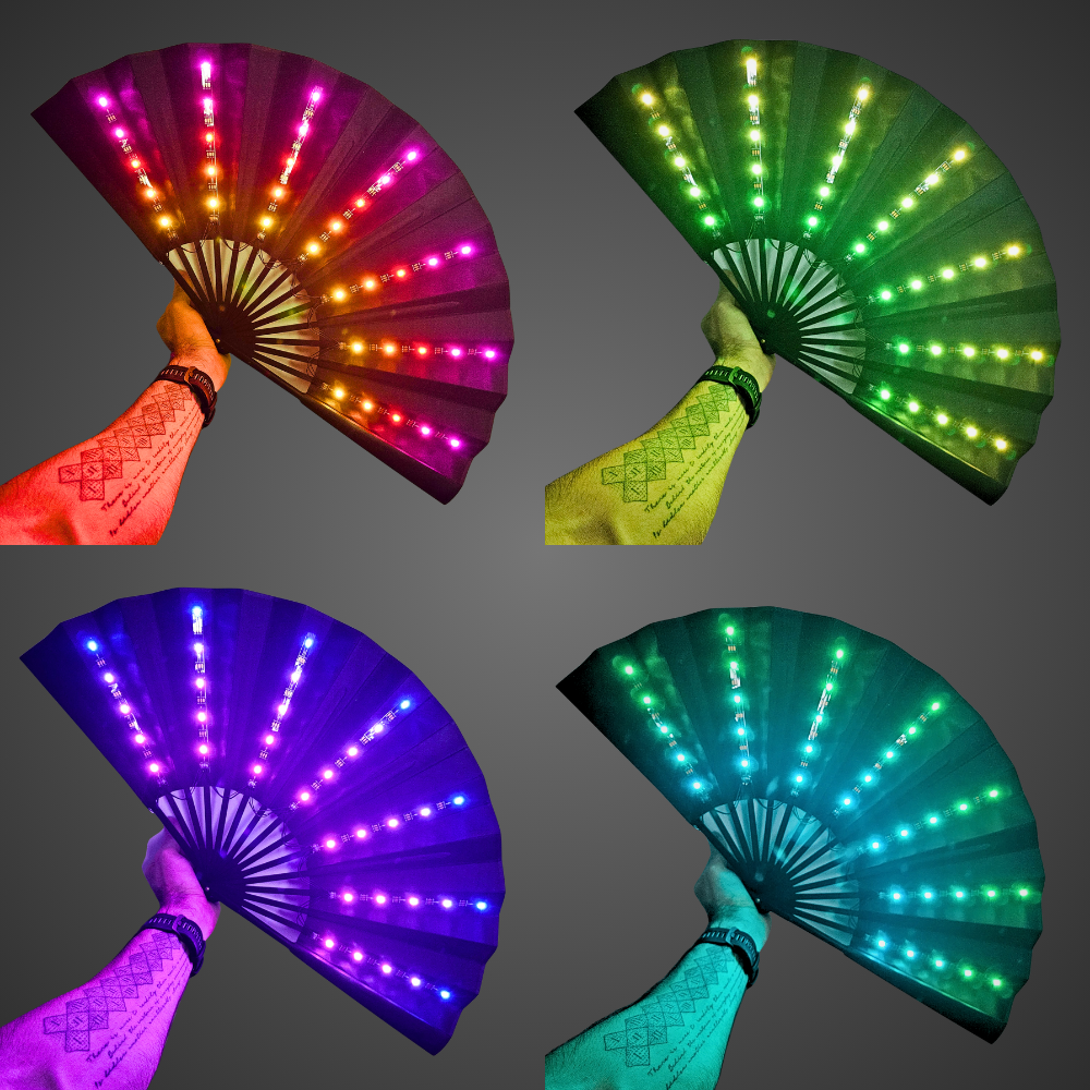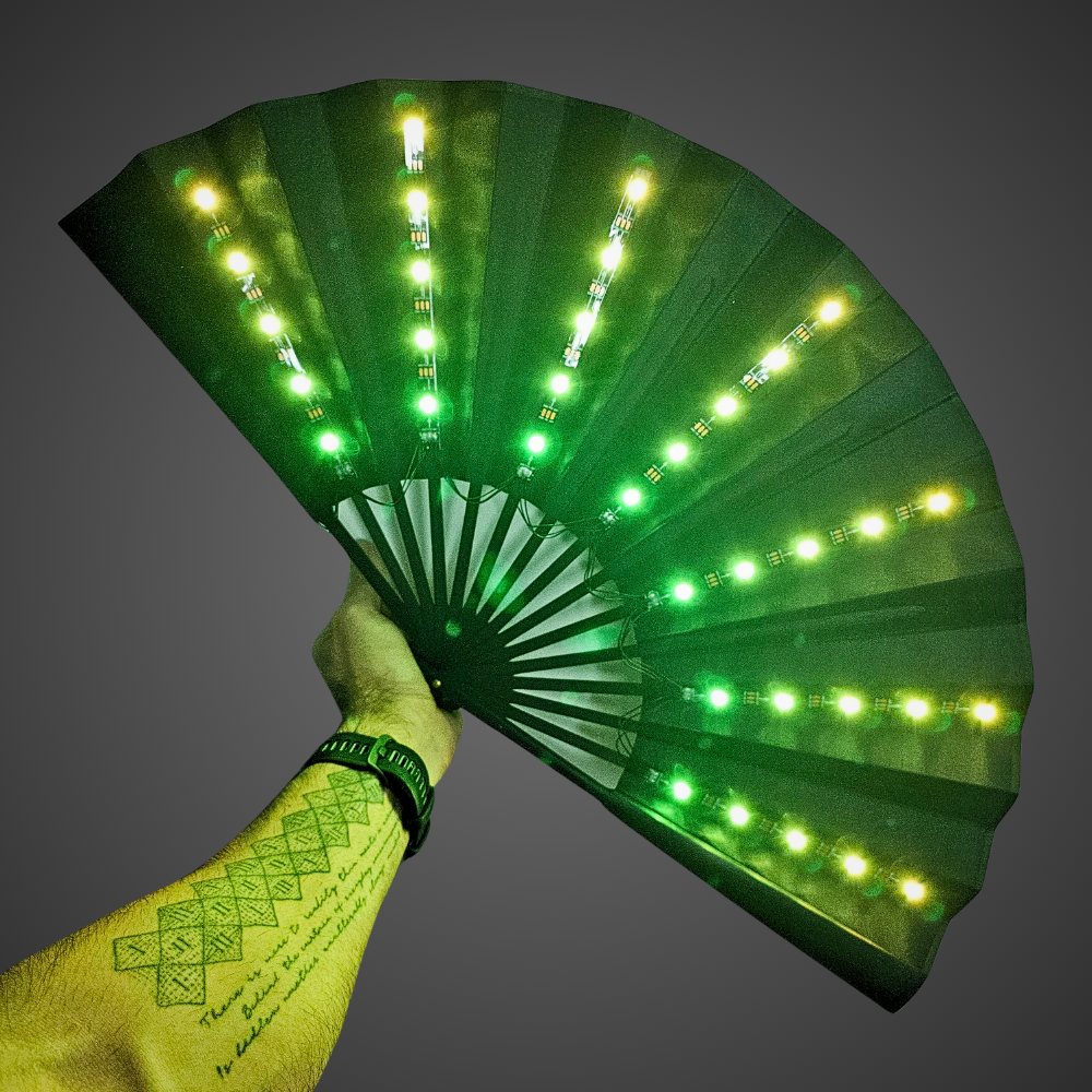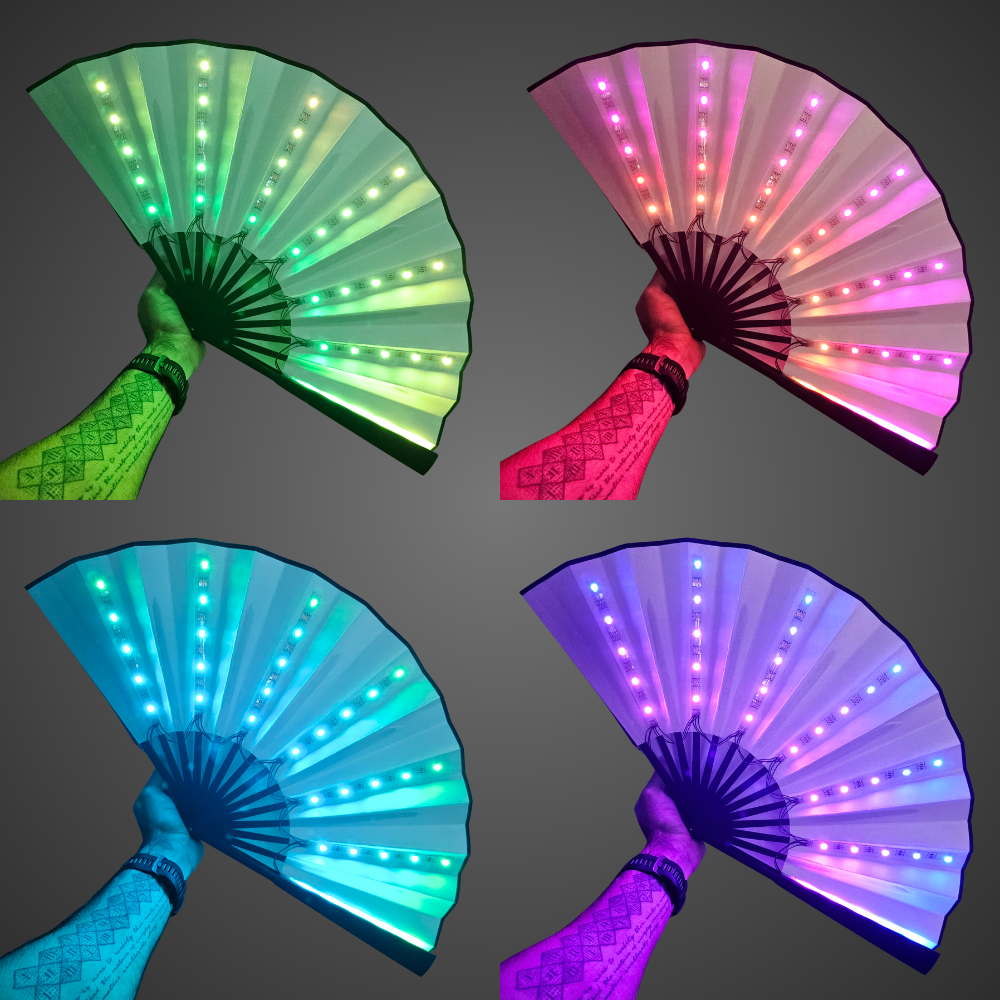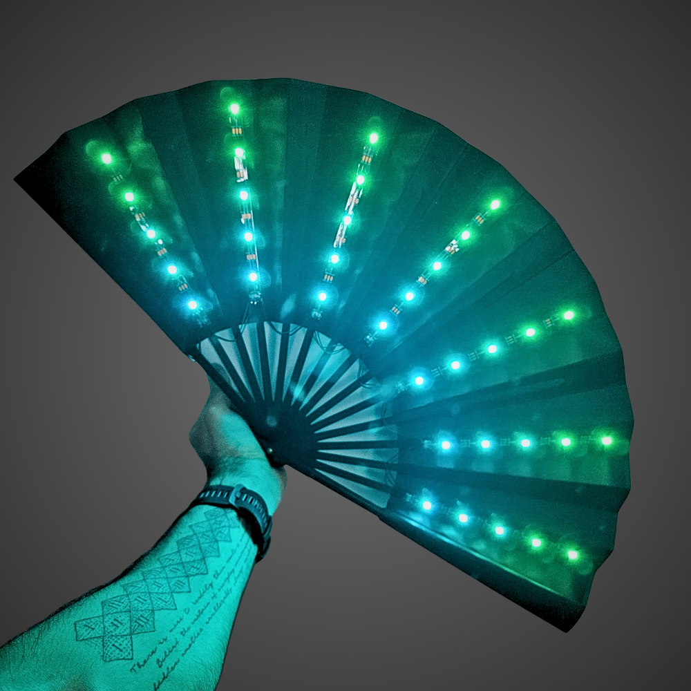 Unleash a neon light show while cutting through the heavy heat of the crowd. Embedded with an array of vibrant, multicolour LED strips, this fan transforms into a mesmerising halo of shifting hues and dynamic patterns that is fully customisable with remote control. Bring the energy and stay fresh at your next rave or festival.