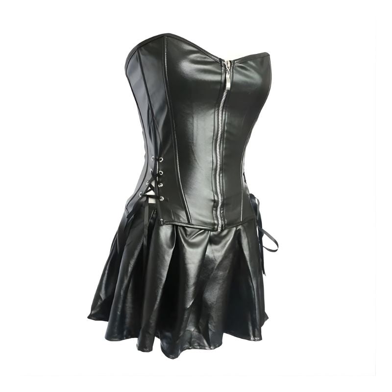 Party Girl Corset Set because you're the main event! This edgy two-piece features a sleek, zip-up faux leather corset top with lace-up sides for a snatched waist, paired with a flirty mini skirt to bring all the attitude. Party hard, look fierce, and serve looks!