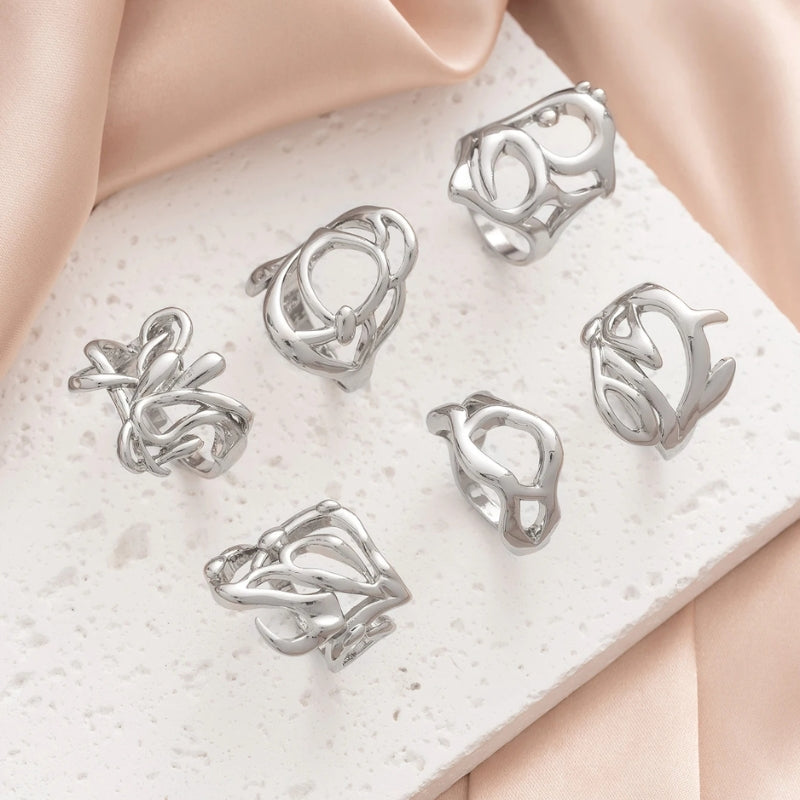 Step into Berlin’s underground with the Phantom Ritual Ring Set, a 6-piece collection of sculptural silver-toned rings inspired by hard techno, industrial minimalism and dark avant-garde fashion. Featuring fluid, abstract metal forms, this statement ring set delivers bold edge and raw energy perfect for warehouse raves, afterhours sessions and techno club styling. Stack them, layer them, or wear them solo - this is underground jewellery built to command attention.