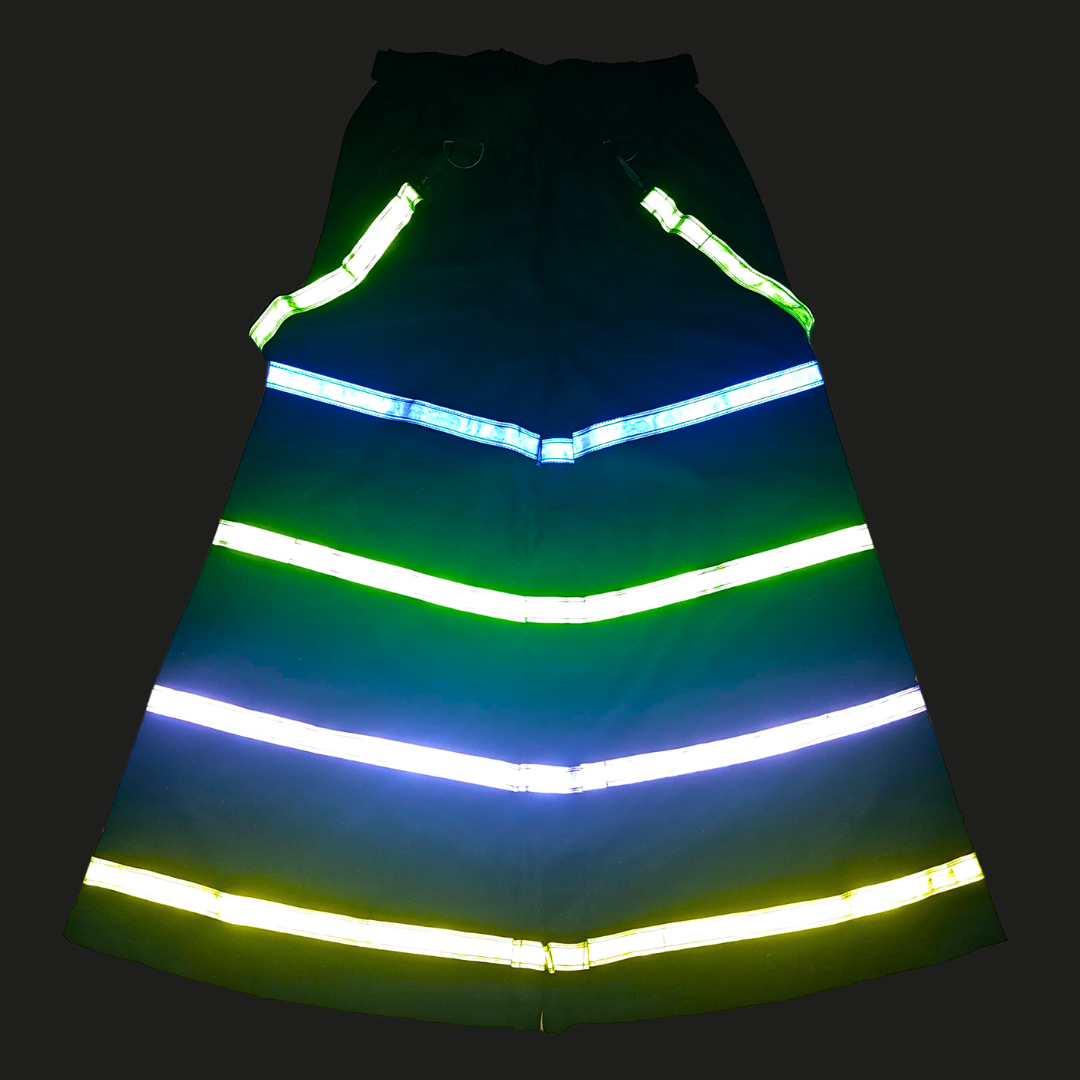 With the explosive resurgence of the Melbourne Shuffle, we had to bring Phat Pants back - reborn from the heart of Aussie rave history. Featuring exaggerated flares, vibrant reflective panels and bold suspenders - these are the iconic shuffle pants you've seen in every Melbourne Shuffle compilation. Every kick, spin, and slide becomes a visual assault, amplified under lasers and strobes. Join the revolution, embrace the nostalgia and own the dancefloor at your next rave or festival.