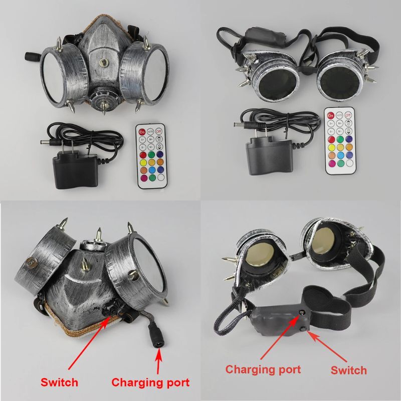 Introducing the Hellion LED Mask & Goggle Set – a fusion of steampunk grit and next-gen rave tech made for hardcore ravers who demand the highest quality. With fully customisable remote-controlled multicolour LEDs and a post-apocalyptic aesthetic, your aura will radiate to those around you and turn heads at your next rave or music festival.