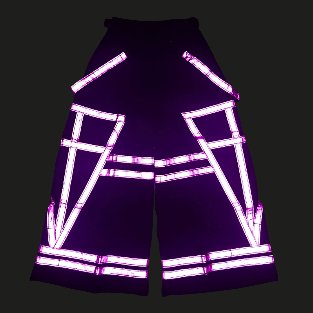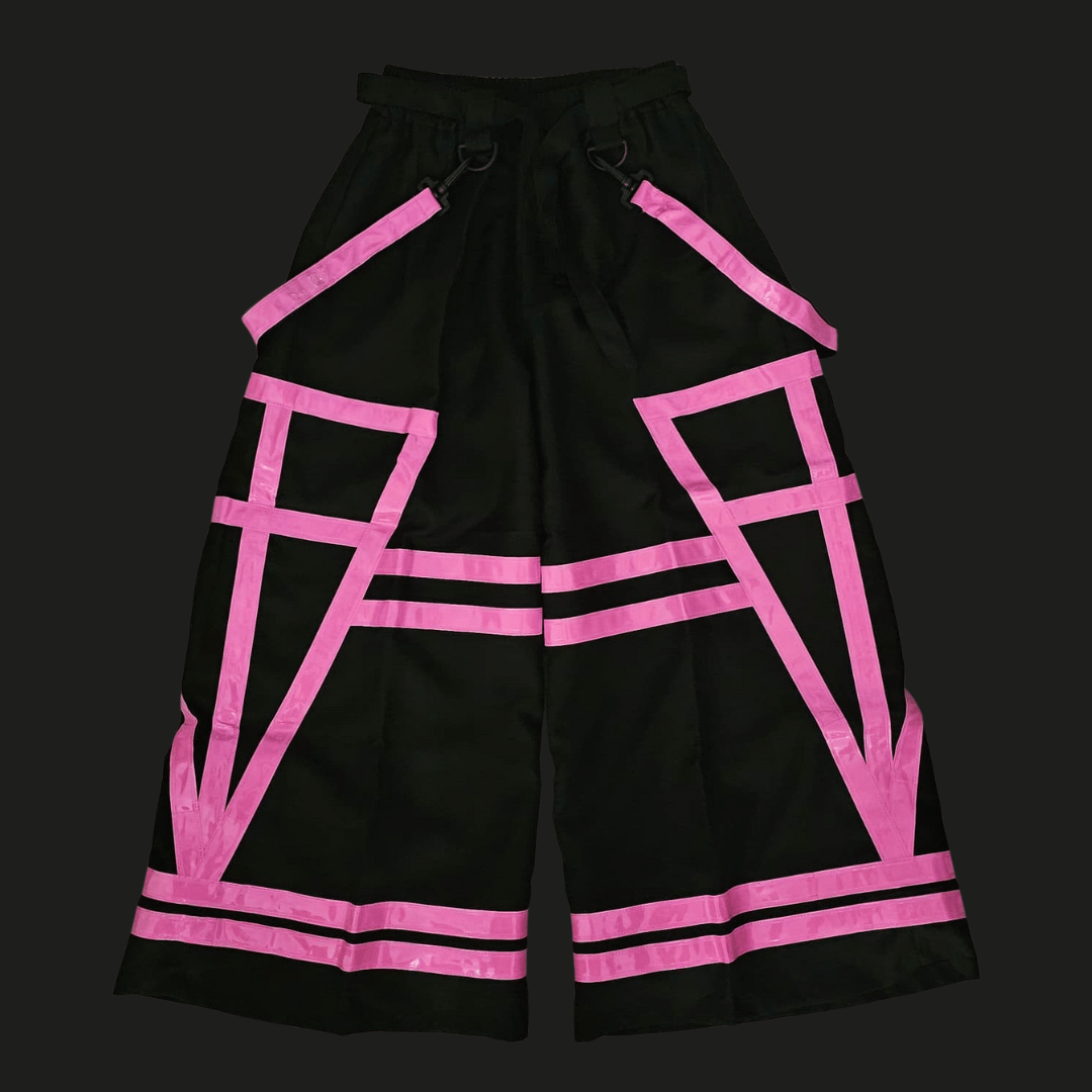 With the explosive resurgence of the Melbourne Shuffle, we had to bring Phat Pants back - reborn from the heart of Aussie rave history. Featuring exaggerated flares, vibrant reflective panels and bold suspenders - these are the iconic shuffle pants you've seen in every Melbourne Shuffle compilation. Every kick, spin, and slide becomes a visual assault, amplified under lasers and strobes. Join the revolution, embrace the nostalgia and own the dancefloor at your next rave or festival.