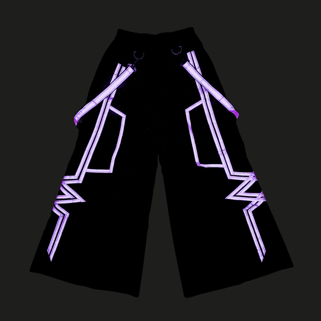 With the explosive resurgence of the Melbourne Shuffle, we had to bring Phat Pants back - reborn from the heart of Aussie rave history. Featuring exaggerated flares, vibrant reflective panels and bold suspenders - these are the iconic shuffle pants you've seen in every Melbourne Shuffle compilation. Every kick, spin, and slide becomes a visual assault, amplified under lasers and strobes. Join the revolution, embrace the nostalgia and own the dancefloor at your next rave or festival.