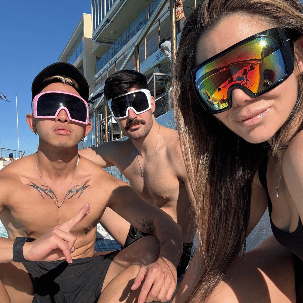 Embrace the total visual domination - a sleek, futuristic visor that consumes your entire gaze, blocking out distractions and plunging you headfirst into the electrifying energy of the night. Embrace the speed at your next rave or festival.