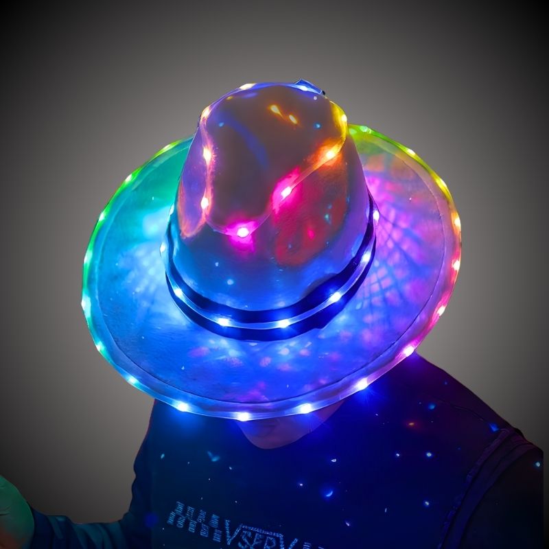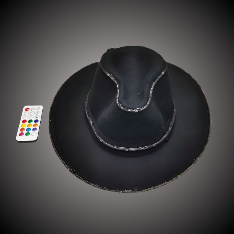 Introducing Cyber Cowboy LED Hat – a fusion of western grit and next-gen rave tech made for hardcore ravers who demand the highest quality. With fully customisable remote-controlled multicolour LEDs and a cyberpunk aesthetic, your aura will radiate to those around you and turn heads at your next rave or music festival.
