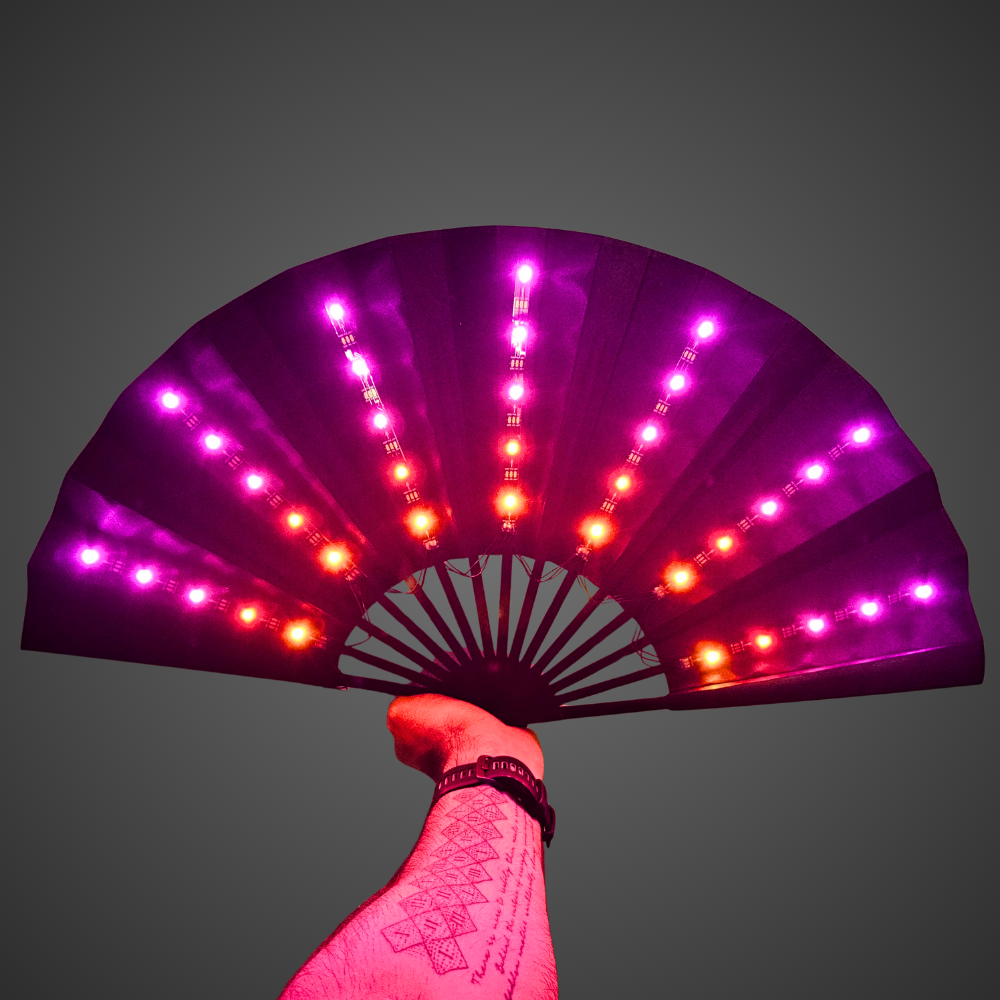 Unleash a neon light show while cutting through the heavy heat of the crowd. Embedded with an array of vibrant, multicolour LED strips, this fan transforms into a mesmerising halo of shifting hues and dynamic patterns that is fully customisable with remote control. Bring the energy and stay fresh at your next rave or festival.